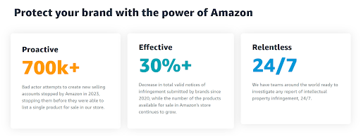 Project Zero: Collaborate directly with Amazon to remove counterfeit listings, empowering brands to take control of their own protection.