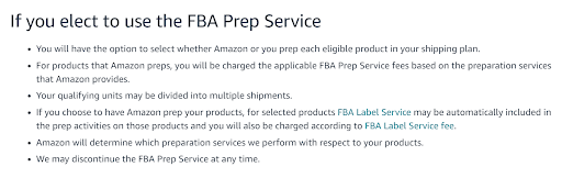 Storage Fees: Some centers may charge monthly storage fees if you keep inventory at the prep center. Check if free storage is available for a limited time.
