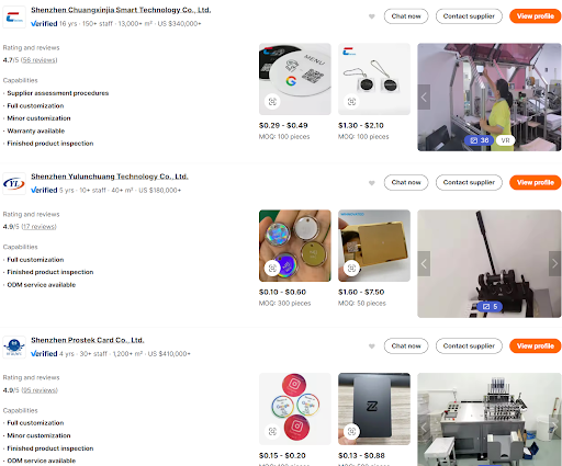 When reaching out to manufacturers, be clear about your product's needs and find out what all they’ve done in NFC before. Most manufacturers will have a minimum order quantity (MOQ), which can range from 500 to 10,000 units depending on their size and capabilities. Their lead times will vary, but expect anywhere from 4 to 8 weeks for production.