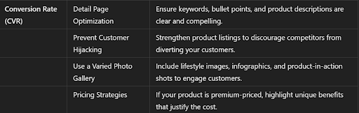 π Detail Page Optimization: Ensure your listing is optimized for the targeted keywords you aim to rank for. Your bullet points, description, and images should effectively communicate the benefits and features of the product.
