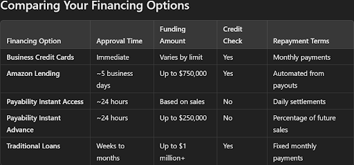Financing is a critical component of growing your Amazon business. Whether you need immediate cash flow solutions like Payability's Instant Access or are considering long-term investments through traditional loans, the right financing can propel your business forward.