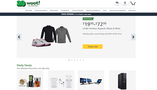 Woot is a daily deals site owned by Amazon that offers limited-time sales on a variety of products, from electronics to apparel. As one of the top sellers on Amazon, Woot benefits from Amazon's extensive logistics network and customer base.